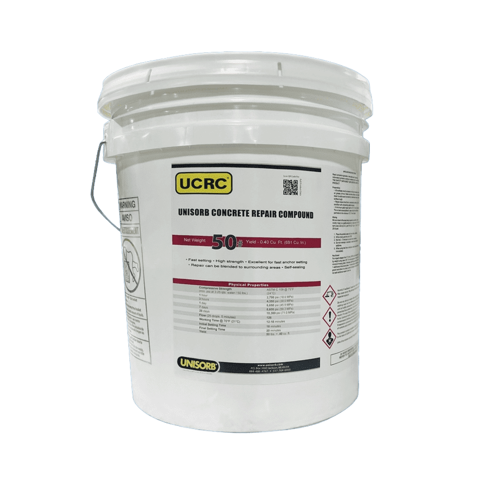 Unisorb Concrete Repair Compound (UCRC) is a precision-engineered, cement-based flowable repair system designed to deliver reliable structural performance in demanding concrete restoration, anchor setting, and crack repair applications. Engineered for high-traffic environments where concrete surfaces are exposed to heavy loads, weather extremes, or frequent wear, this fast-setting formulation provides exceptional strength and durability without compromising installation efficiency. With superior flowability and self-sealing properties, it easily fills cracks, holes, and voids in concrete floors, foundations, sidewalks, and roadways — requiring no pre-wetting or external sealants for outdoor applications.