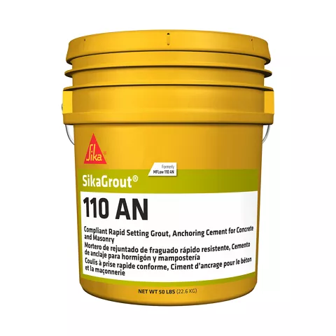 SikaGrout-110 AN is a precision-engineered, rapid-setting cementitious grout designed to deliver reliable structural support in anchoring, machinery grouting, and equipment installation applications. Engineered for demanding construction environments where high early strength is critical, this single-component formulation provides consistent performance and long-term durability. With excellent pourable consistency, it easily fills clearances from 1/4 inch and above beneath baseplates, anchor bolts, or structural supports — requiring only the addition of potable water for installation.